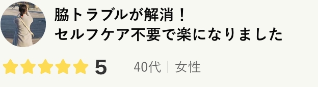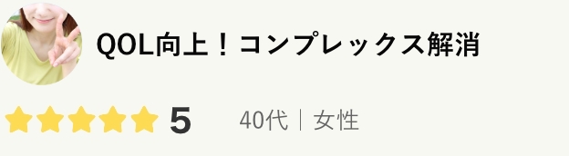 今までのセルフケアの時間と労力が嘘のように不要になり、とてもゆとりのある生活になりました。長年諦めていた悩みでしたが、この施術を受けて本当に良かったです!