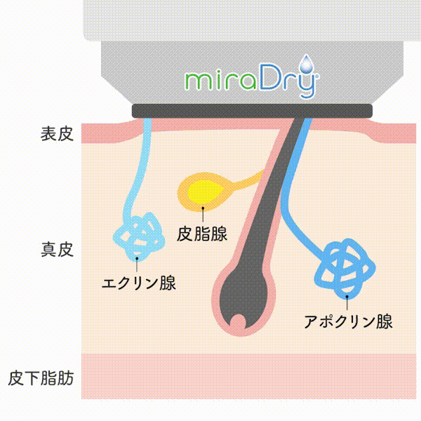ワキガの原因となる「アポクリン腺」と「エクリン腺」を熱で破壊することで、ニオイや汗の元を根本から改善する治療法です。