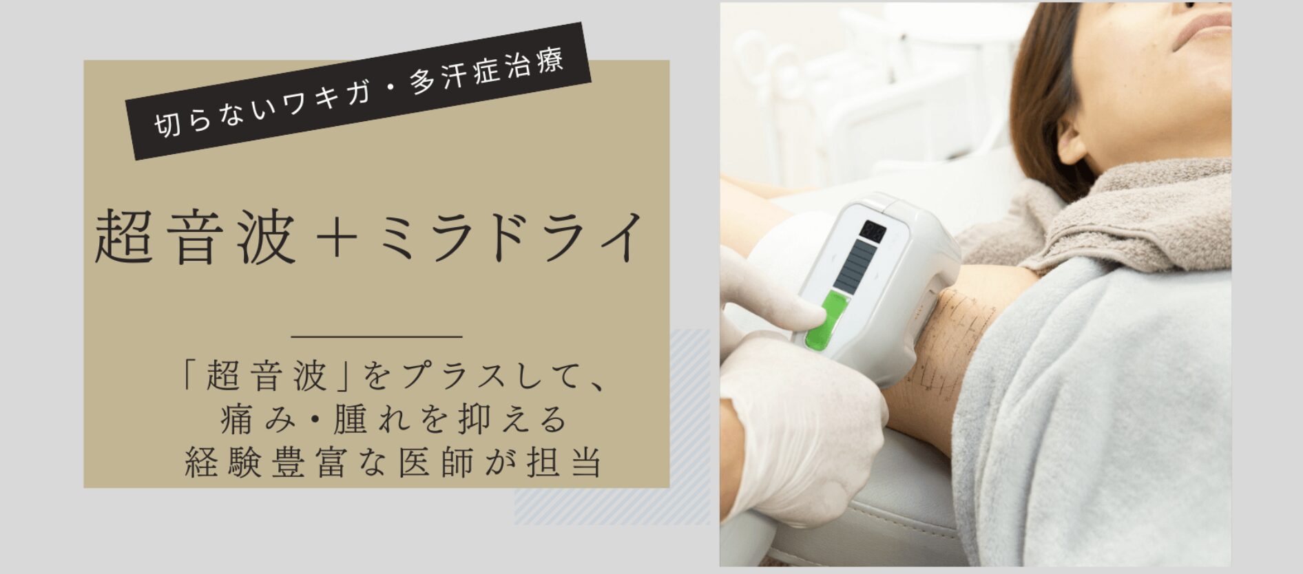 ミラドライ認定医による診察で、わきの状態をしっかりと診察されます。