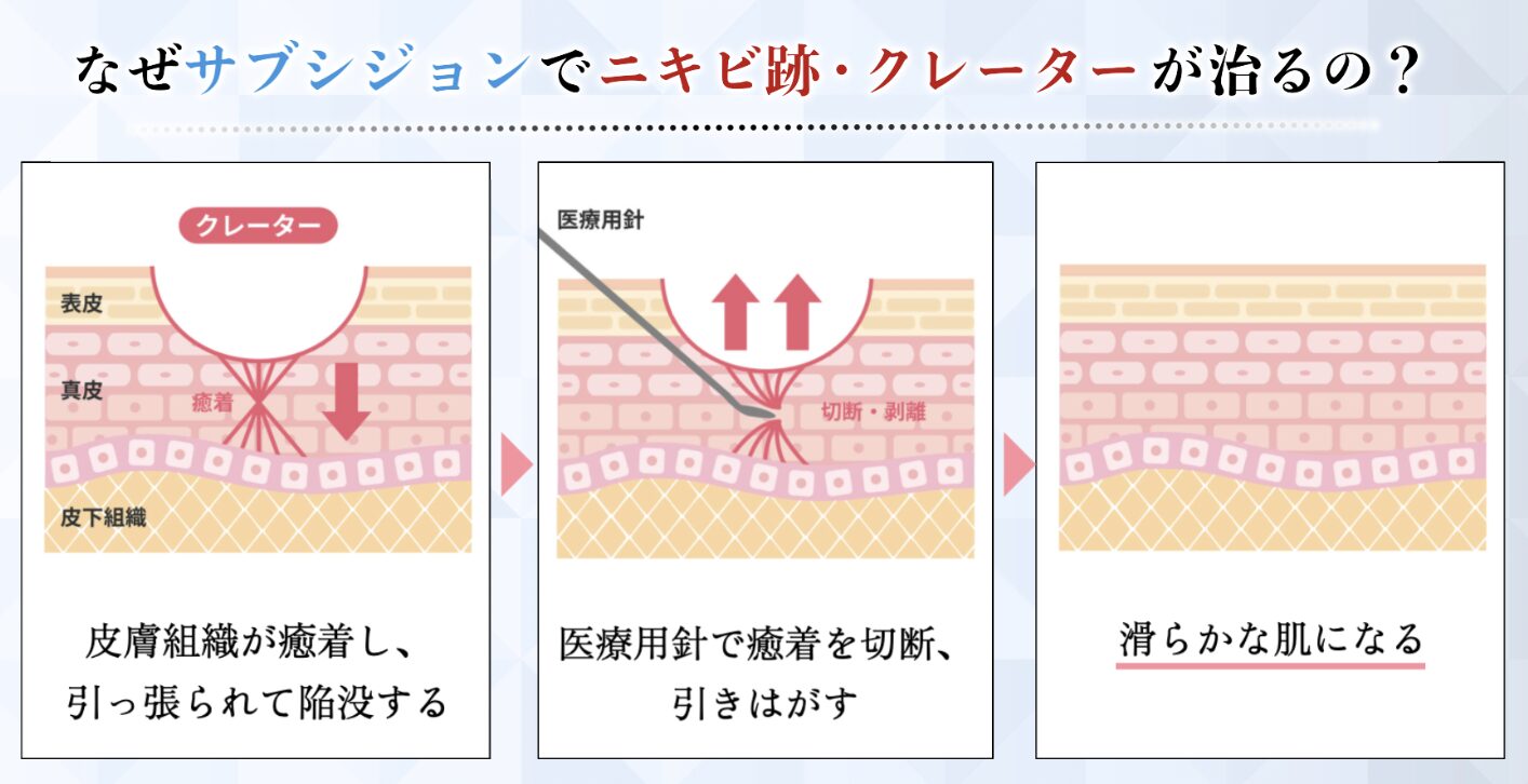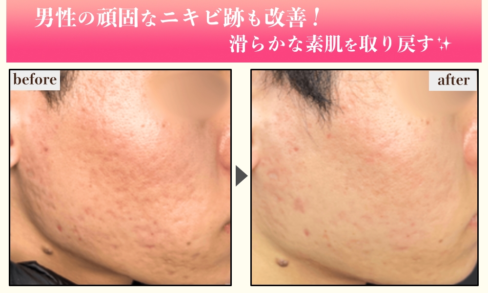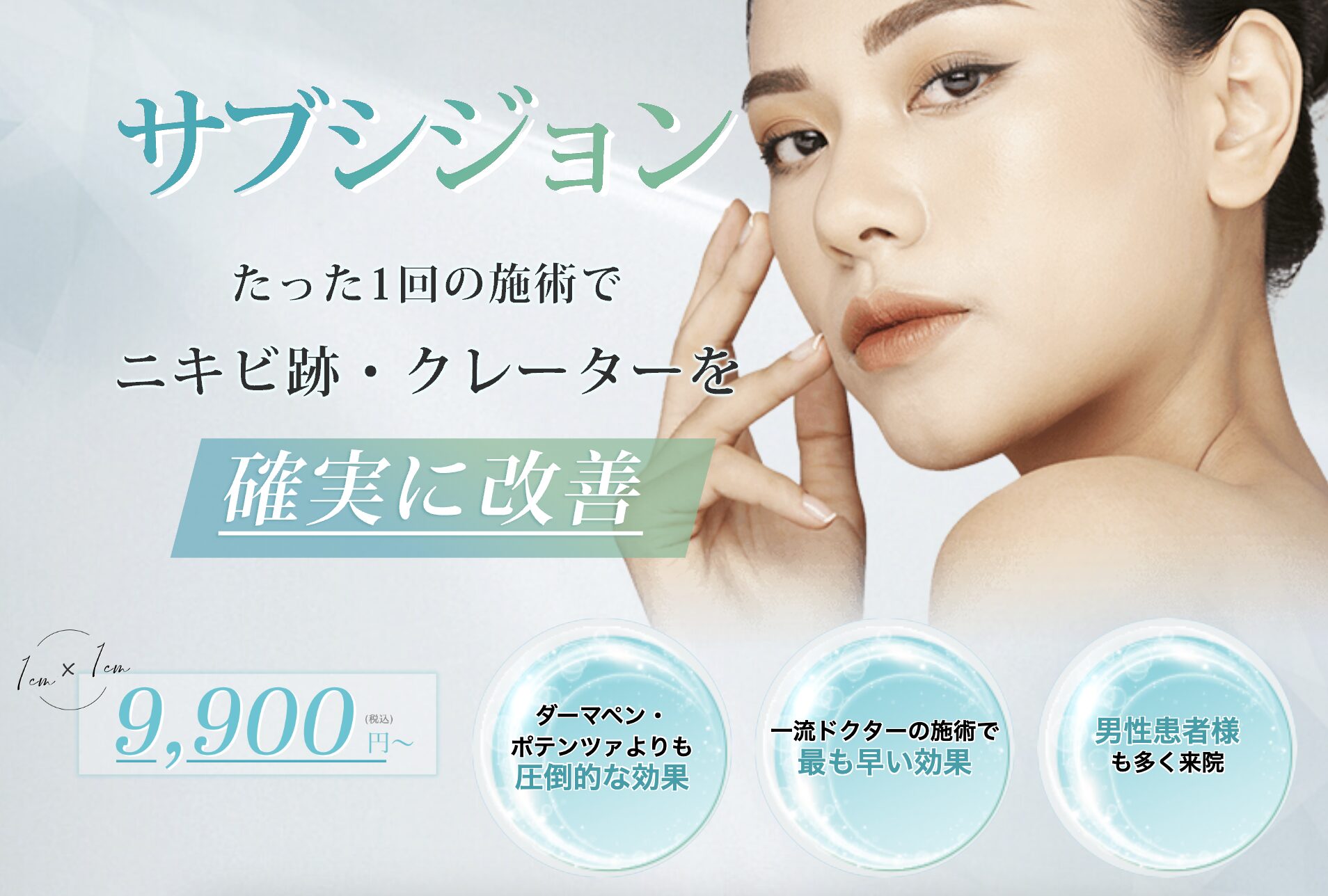 ずっと悩んでいたニキビ跡が、こちらの治療を受けるようになってから改善してきて、とても満足しています!他のクリニックではなかなか効果を感じられず、不安だったのですが、サブシジョンなどの治療をしてもらい、変化が目に見えてわかるようになりました。