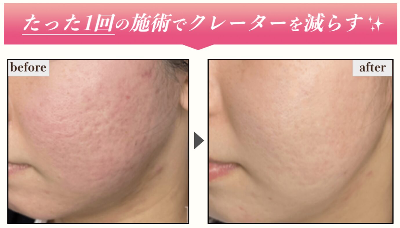 クレーターが減少し、肌質が激変しました!!他のクリニック行って色んな施術しましたが、ここまで自分に合った適切な施術を教えて下さり本当にありがとうございます!!