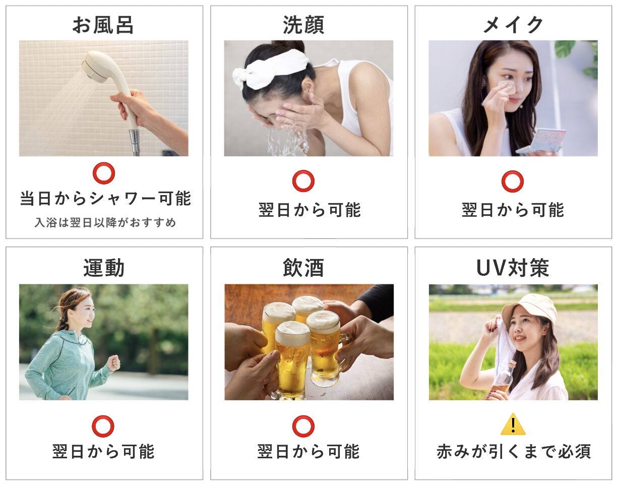 アフター ケア | ![]() 丁寧・充実 アイスパックあり | ![]() 丁寧な対応 ー | ![]() 丁寧な対応 ー |