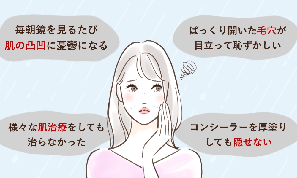 赤みにはVビームというレーザー治療をして、凹みの治療もダーマペンとサブシジョンという治療でかなり減って満足しています。