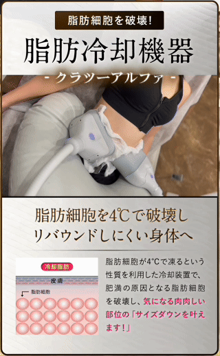 「クラツーアルファ」は従来の2倍の効率*で脂肪細胞を減少させることができる脂肪冷却マシンです。