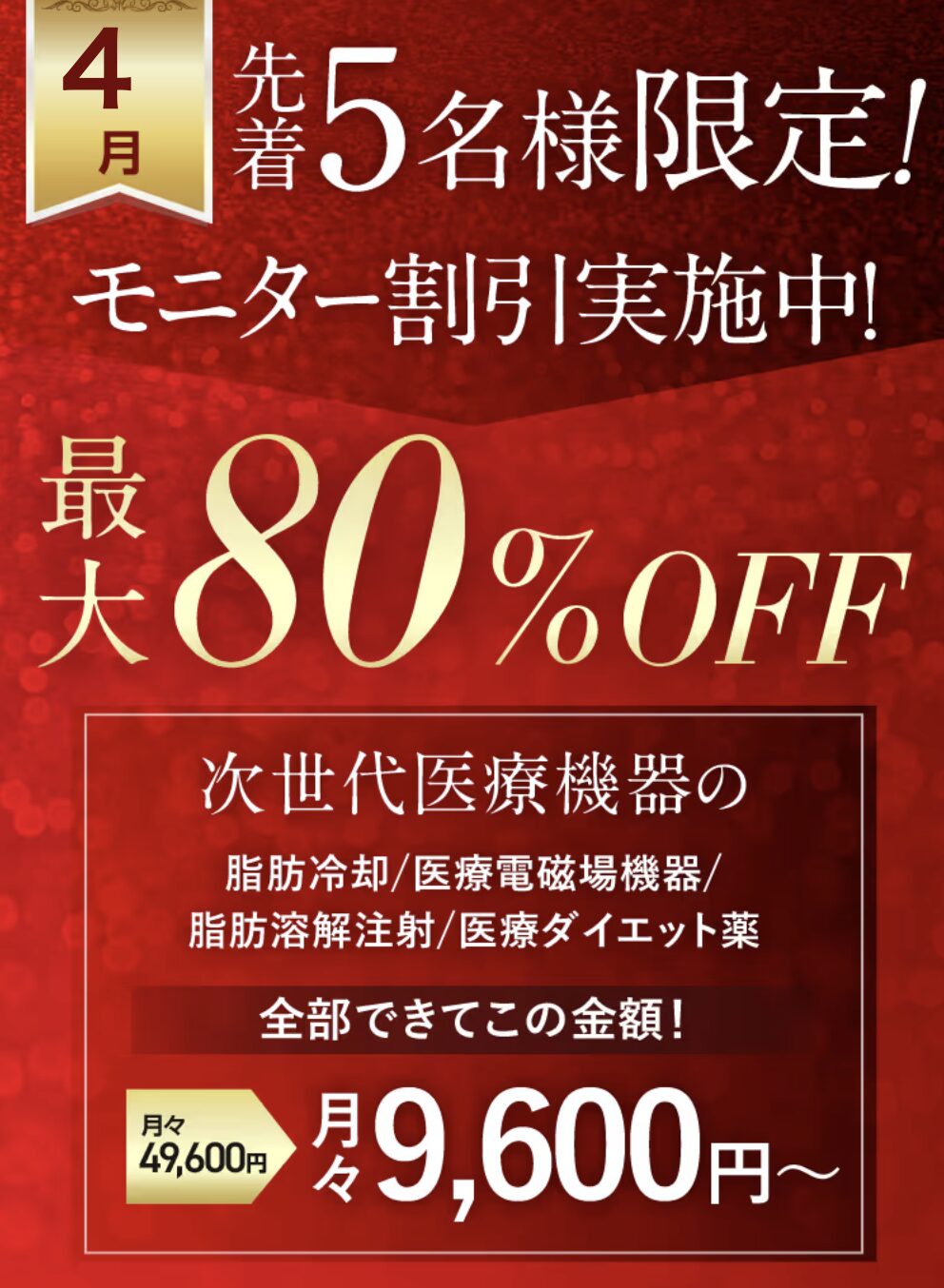 それなら医療ダイエットモニター制度を利用するのがおすすめです!モニター価格で通常の施術を半額以下で受けられますよ!