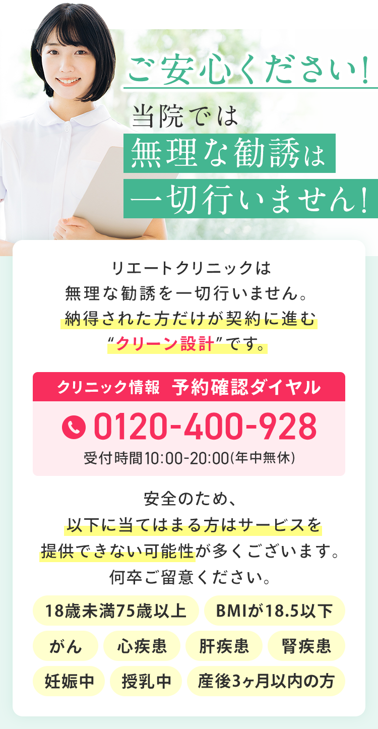また、リエートクリニックは無理な勧誘を一切しないことで有名です。